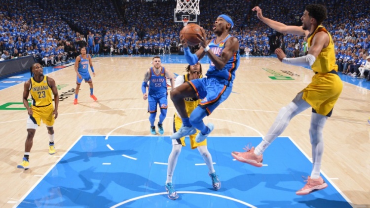 不过,我倾向于认为,步行者不至于被雷霆防守策略上的轻微调整所拦住——之所以说这是个轻微调整,是因为切特比赛后期增加了强延误和换防。给我的感觉是,戴格诺特对守沉退是有所保留的——G2第一节,步行者就有一些处理办法,比如让哈利先找华莱士或者SGA,把多特换走,再跟中锋挡拆。