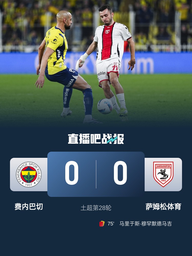03月17日讯 今天凌晨土超第28轮,费内巴切0-0打平萨姆松体育,少赛一场的情况下,落后榜首9分。