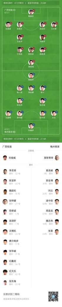 05月20日讯 北京时间今日17点,足协杯第3轮,中乙球队广西恒宸vs中超球队梅州客家,赛前首发阵容出炉。