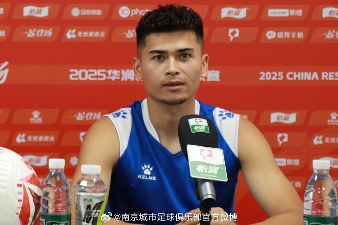 肖开提江·塔依尔介绍球队备战状况,“大家下午好,回到南京是一个让我非常开心的事情。希望明天在张导的带领下,我们能够取得一个理想的成绩。”