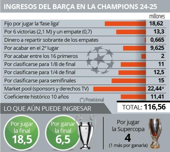 "十年系数"(基于近十年欧战历史排名)方面,巴萨本赛季初始系数为1141万欧元,仅次于皇马(1245万)、拜仁(1210万)和曼城(1176万)。