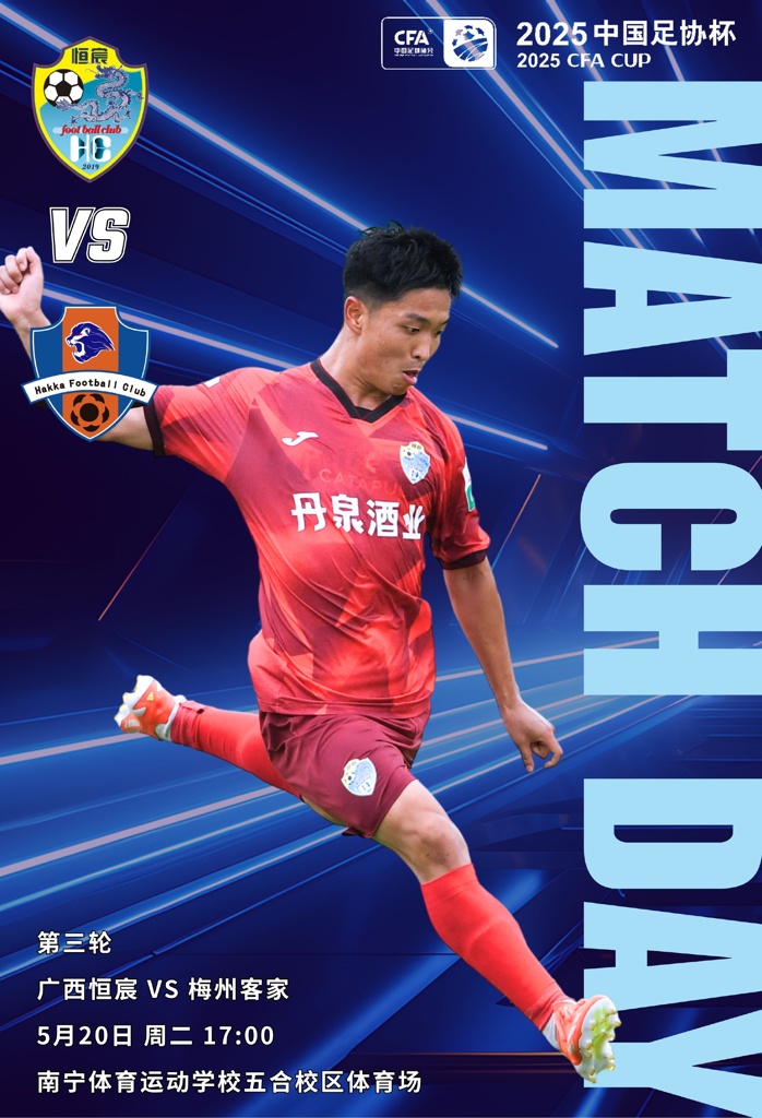05月20日讯 北京时间今日17点,足协杯第3轮,中乙球队广西恒宸vs中超球队梅州客家,赛前首发阵容出炉。