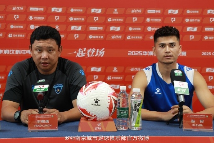 中甲第17轮南京城市主场迎战广西平果国晶。今天晚上,南京城市主教练张晓峰携队员肖开提江·塔依尔出席赛前新闻发布会。